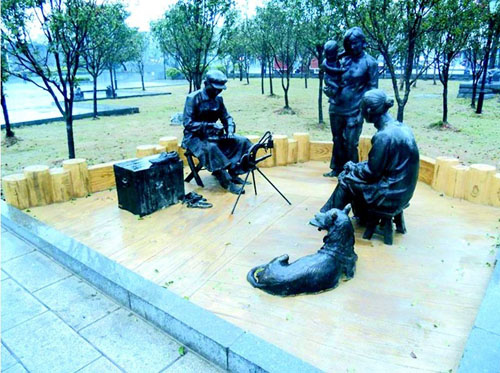 巴陵廣場上4組藝術銅雕塑石改造